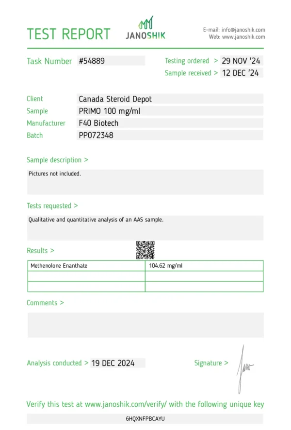 MASTERON P 100 – F-40 Biotech Injectables Germany (Qualitative and quantitative analysis second image)